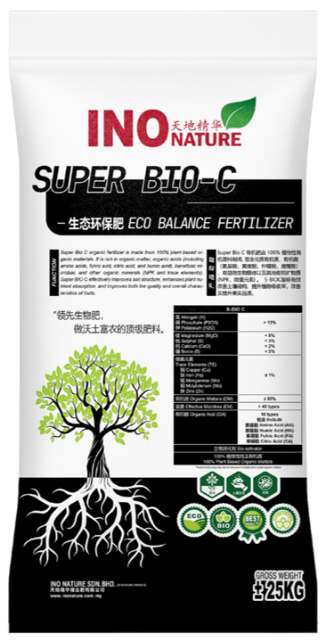 Super Bio-C ialah baja organik premium berasaskan tumbuhan yang dirumus khusus untuk pemulihan tanah, terutama bagi tanah yang rosak teruk. Ia membantu mengoptimumkan keadaan tanah untuk penanaman durian dan menyokong penghasilan buah berkualiti premium.