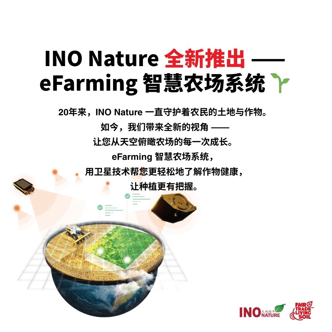 20年来,INO Nature 一直守护着农民的土地与作物。如今,我们带来全新的视角 — 让您从天空俯瞰农场的每一次成长。eFarming 智慧农场系统, 用卫星技术帮您更轻松地了解作物健康, 让种植更有把握。